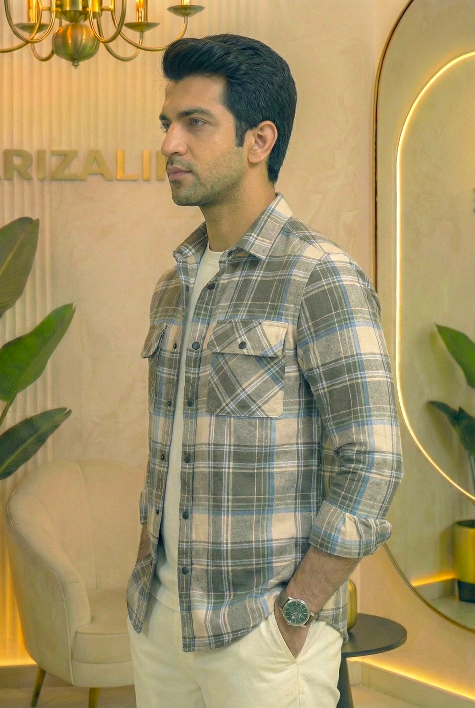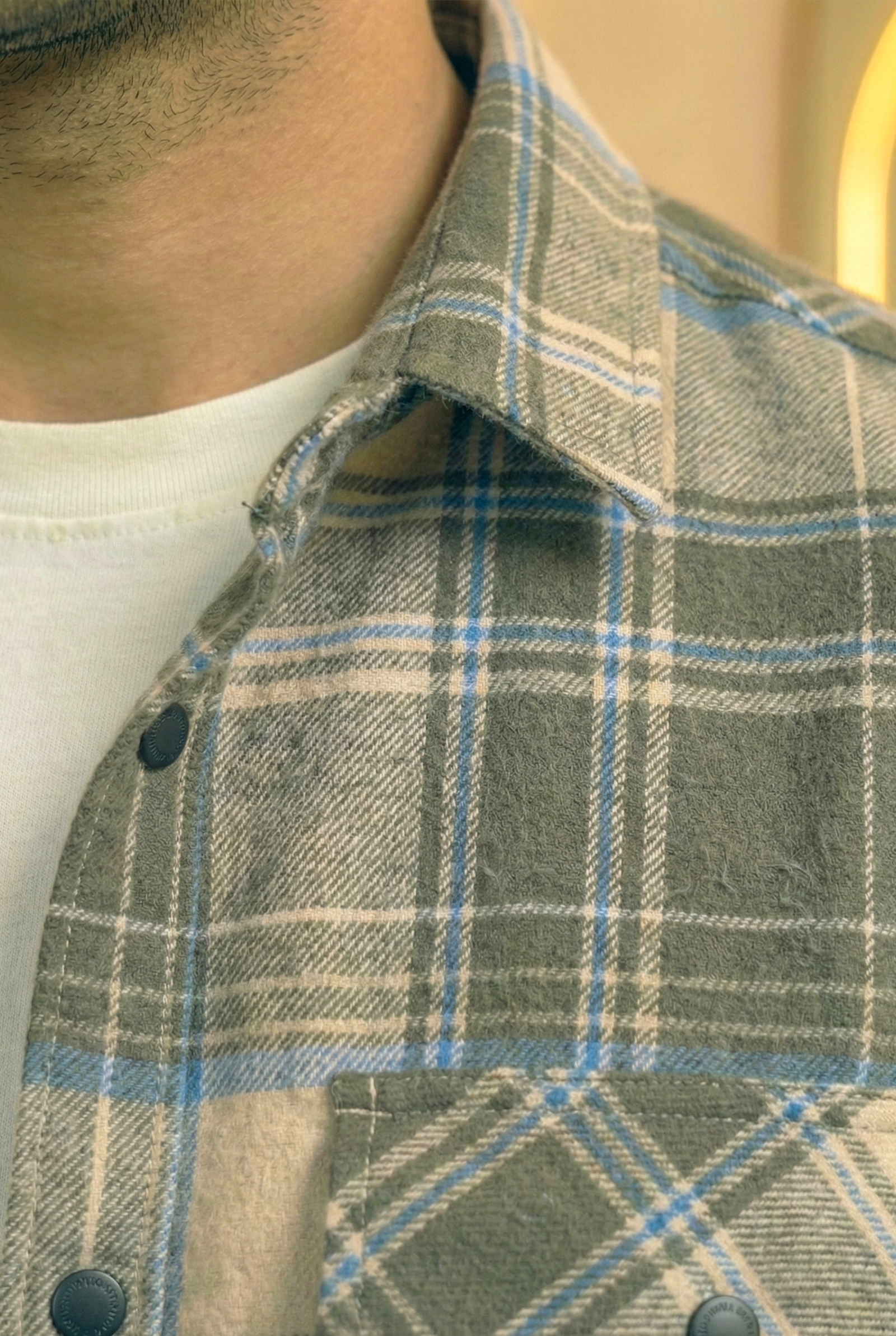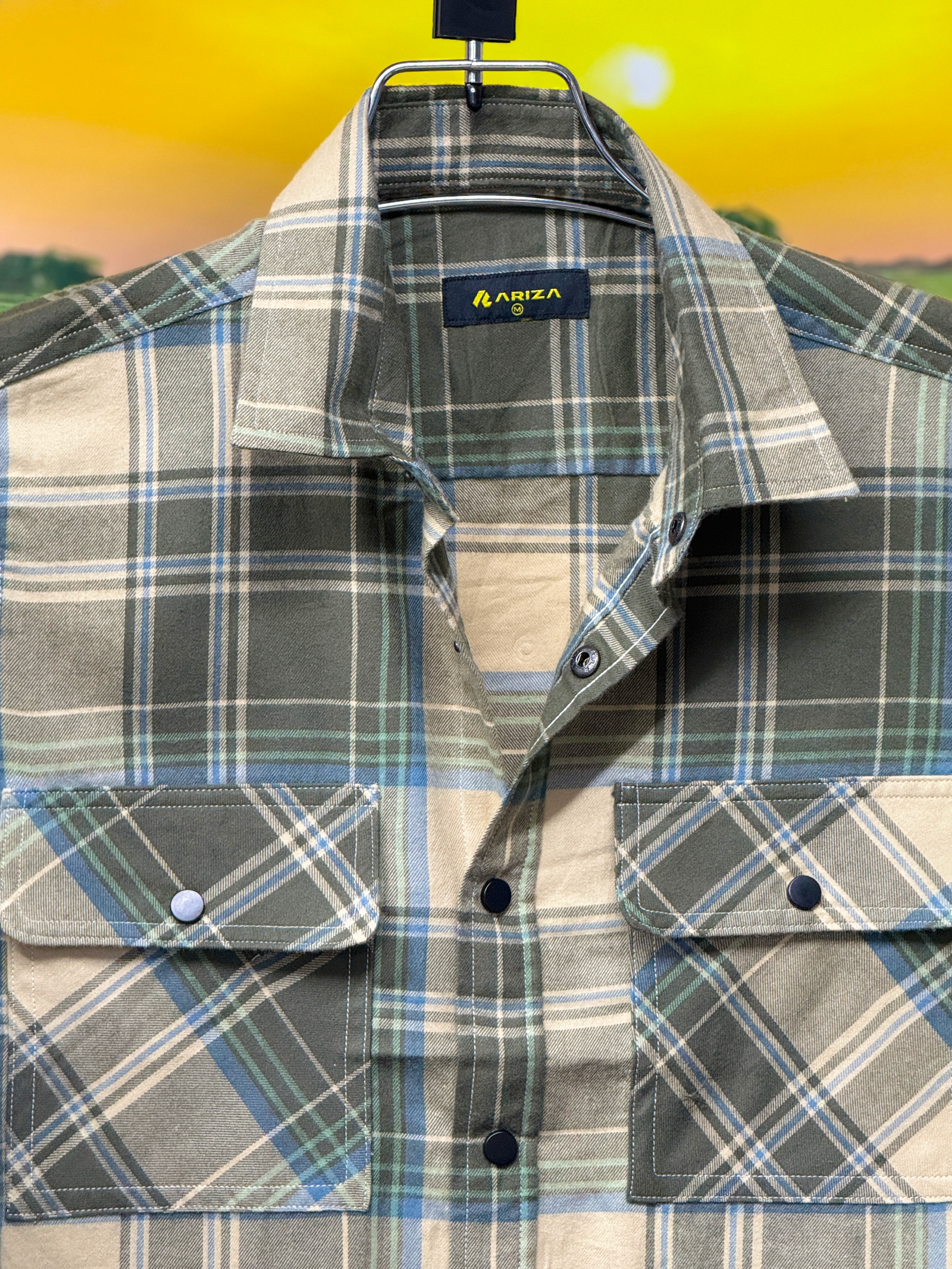 Ariza Premium Grey-Green Check Flannel Shirt for Men