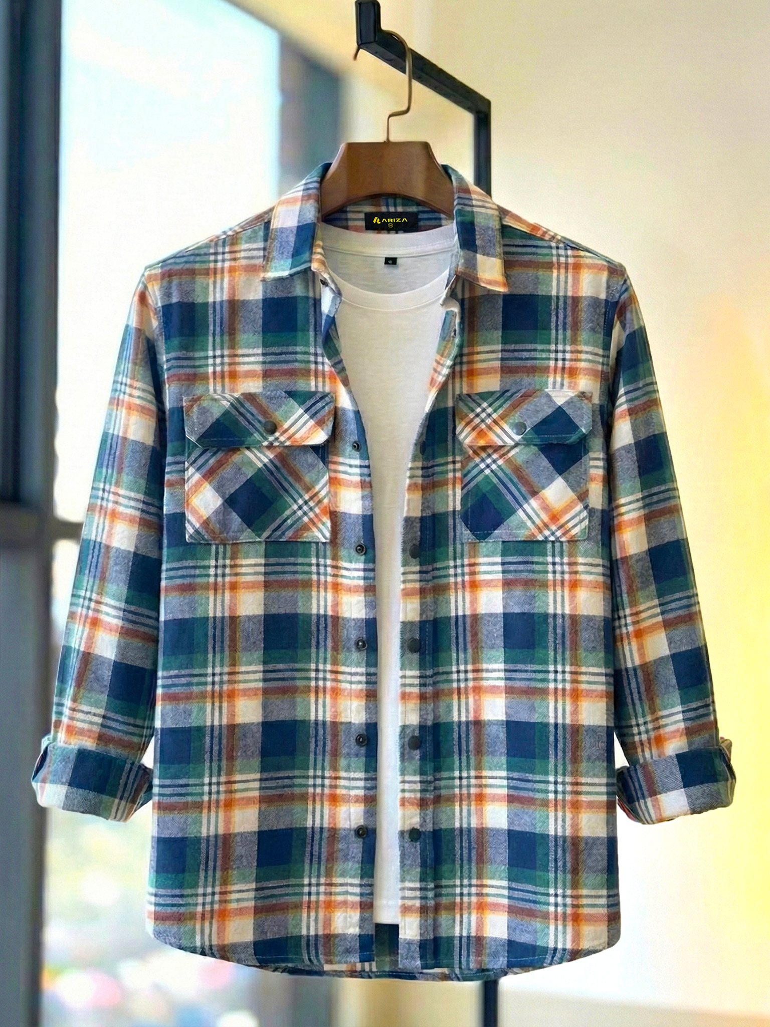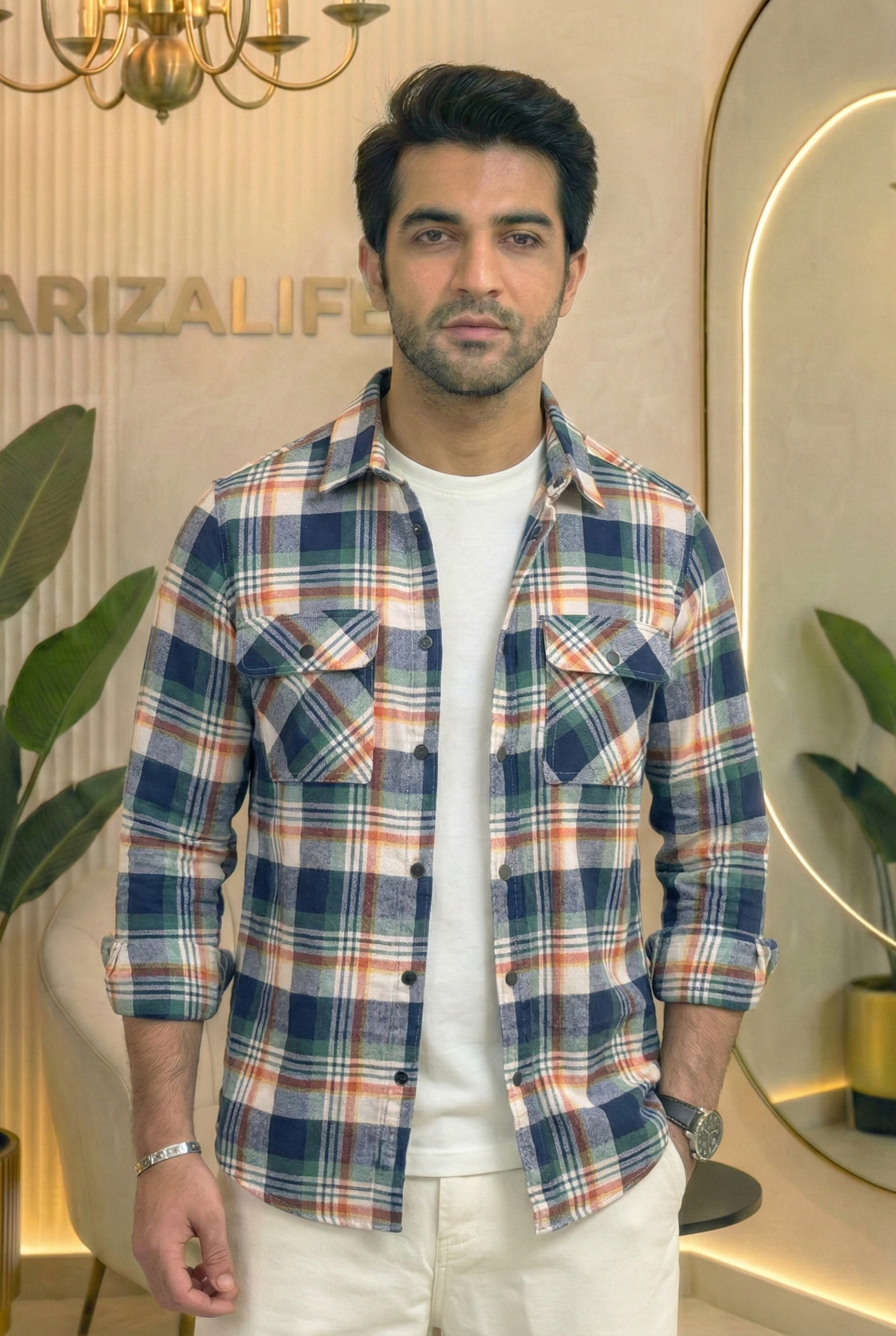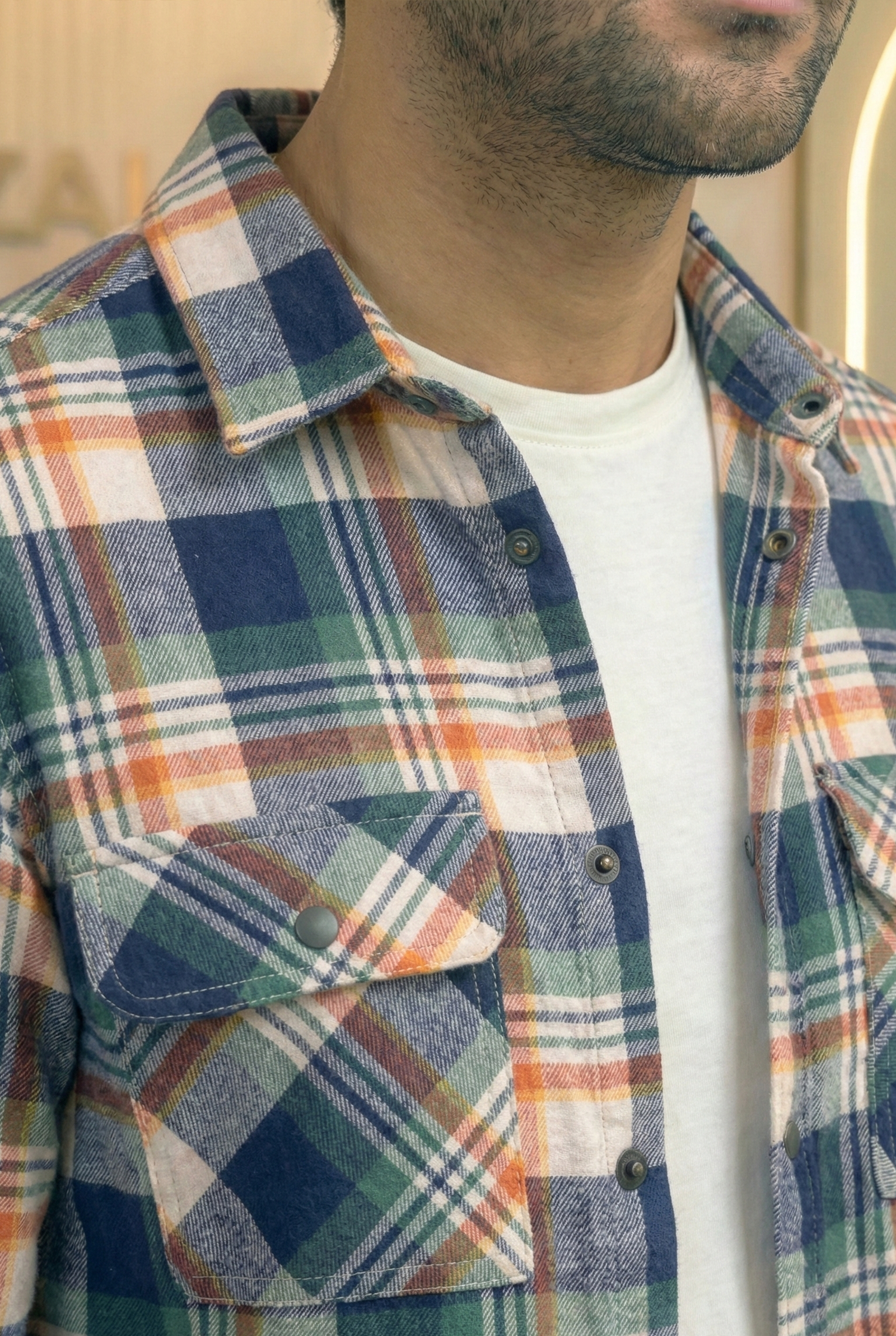 Ariza Premium Shacket – Green & O.White Check Winter Shacket for Men