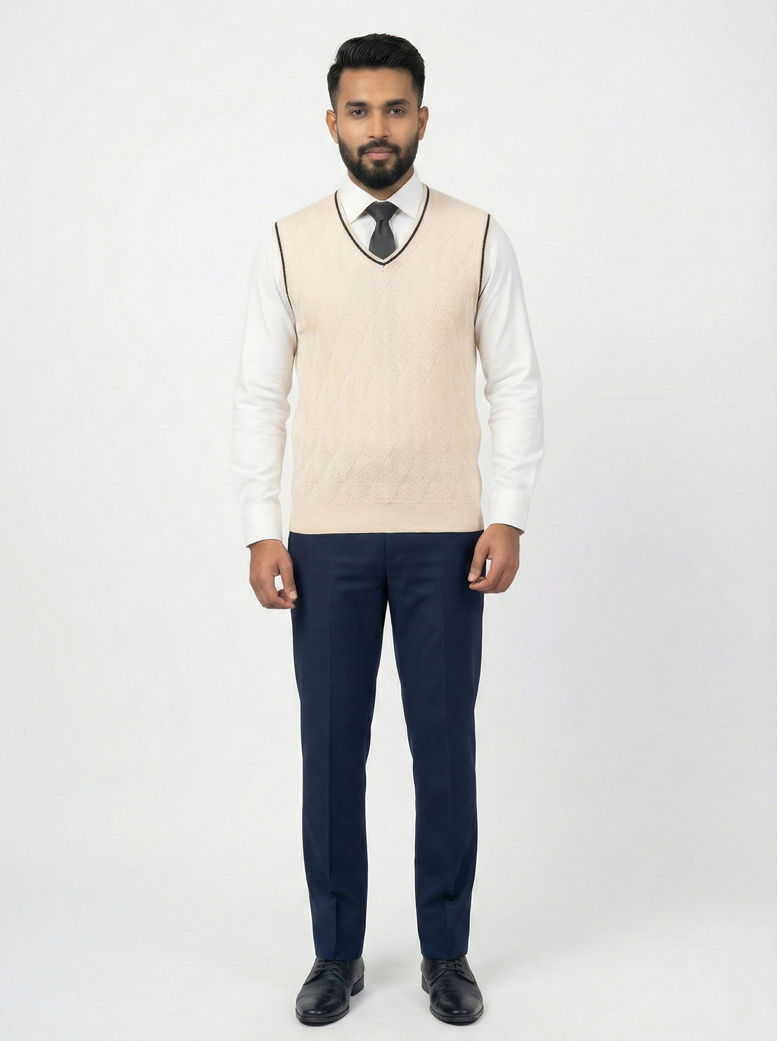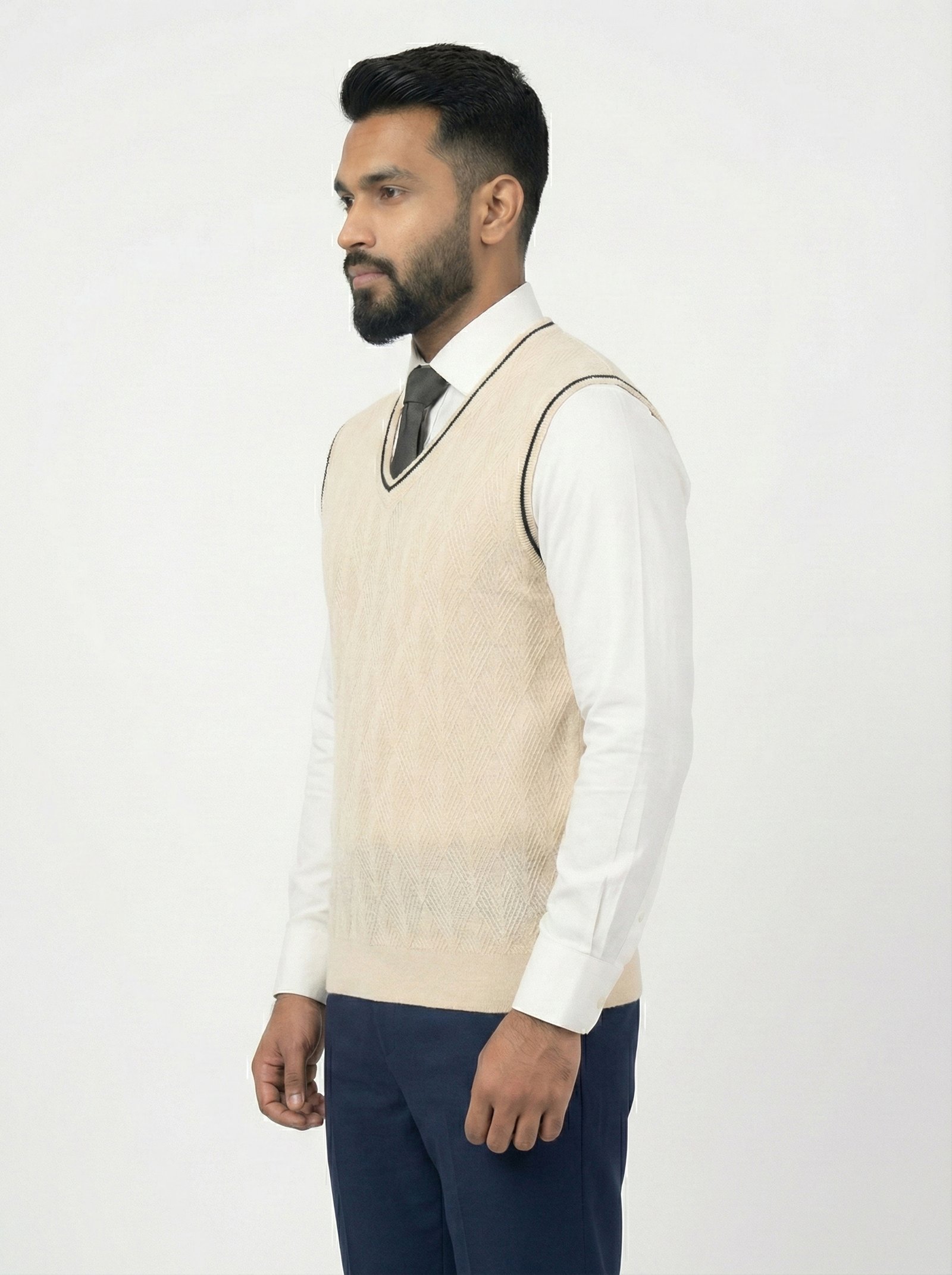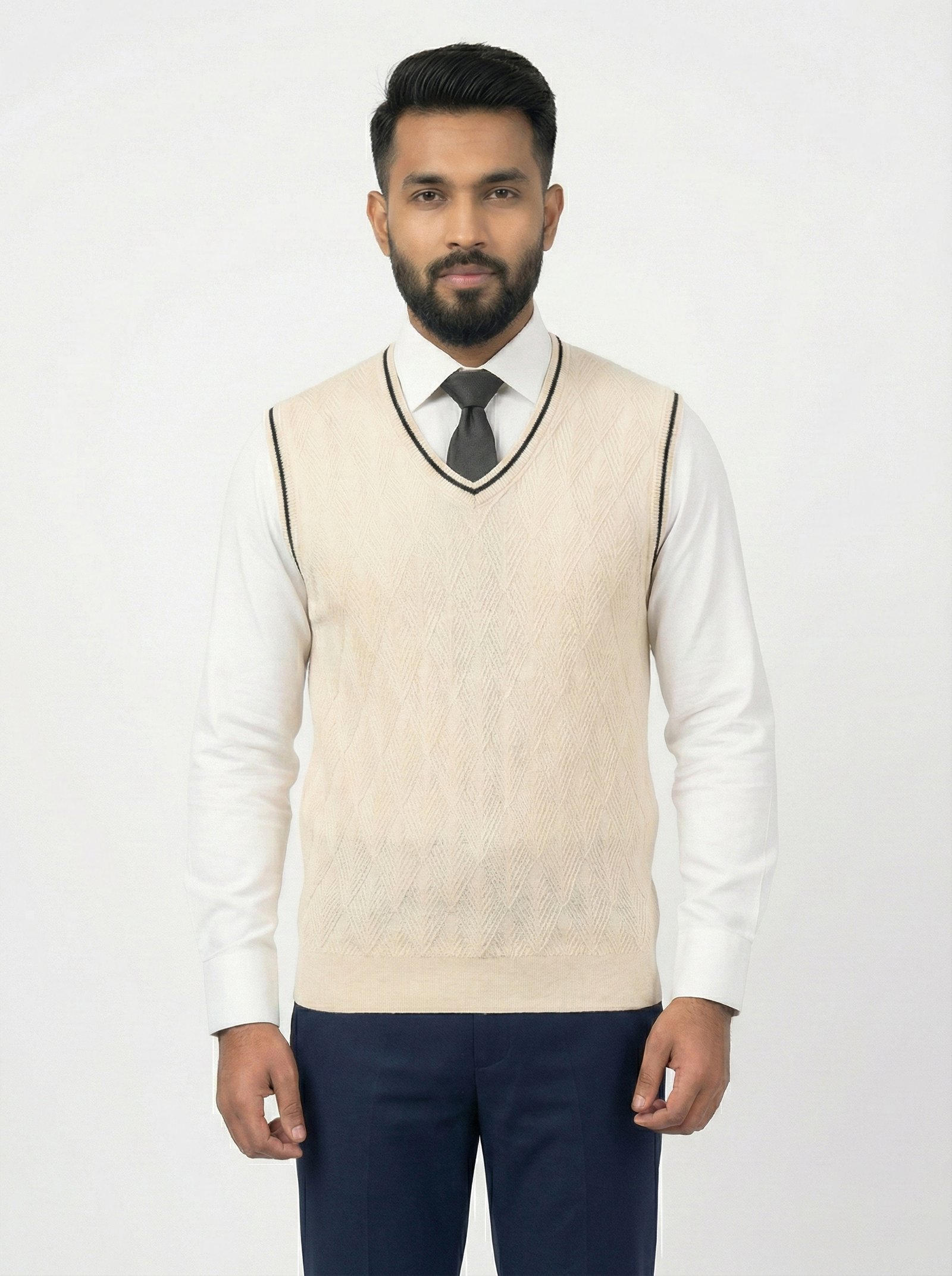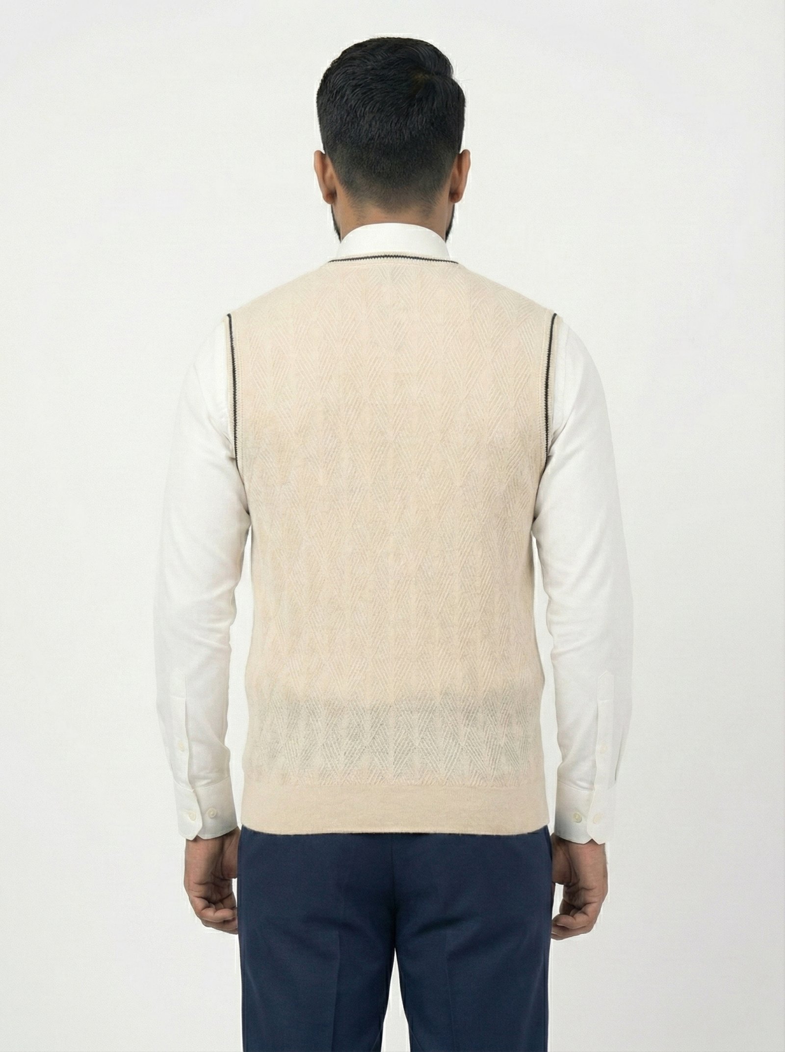 This vest is ideal for men who prefer subtle luxury and high-end aesthetics. The design naturally reflects the charm of an old money sweater vest, blending classic fashion with modern comfort. Its Off White color makes it easy to match with shirts, turtlenecks and jackets, giving you effortless styling options. Whether you’re dressing for work or a relaxed hangout, this off white sweater vest men style ensures you always look polished.