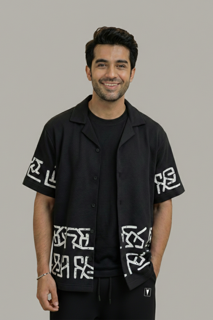 Carleoni Mens Co-ord Set Black | Baggy Trouser & Cuban Shirt