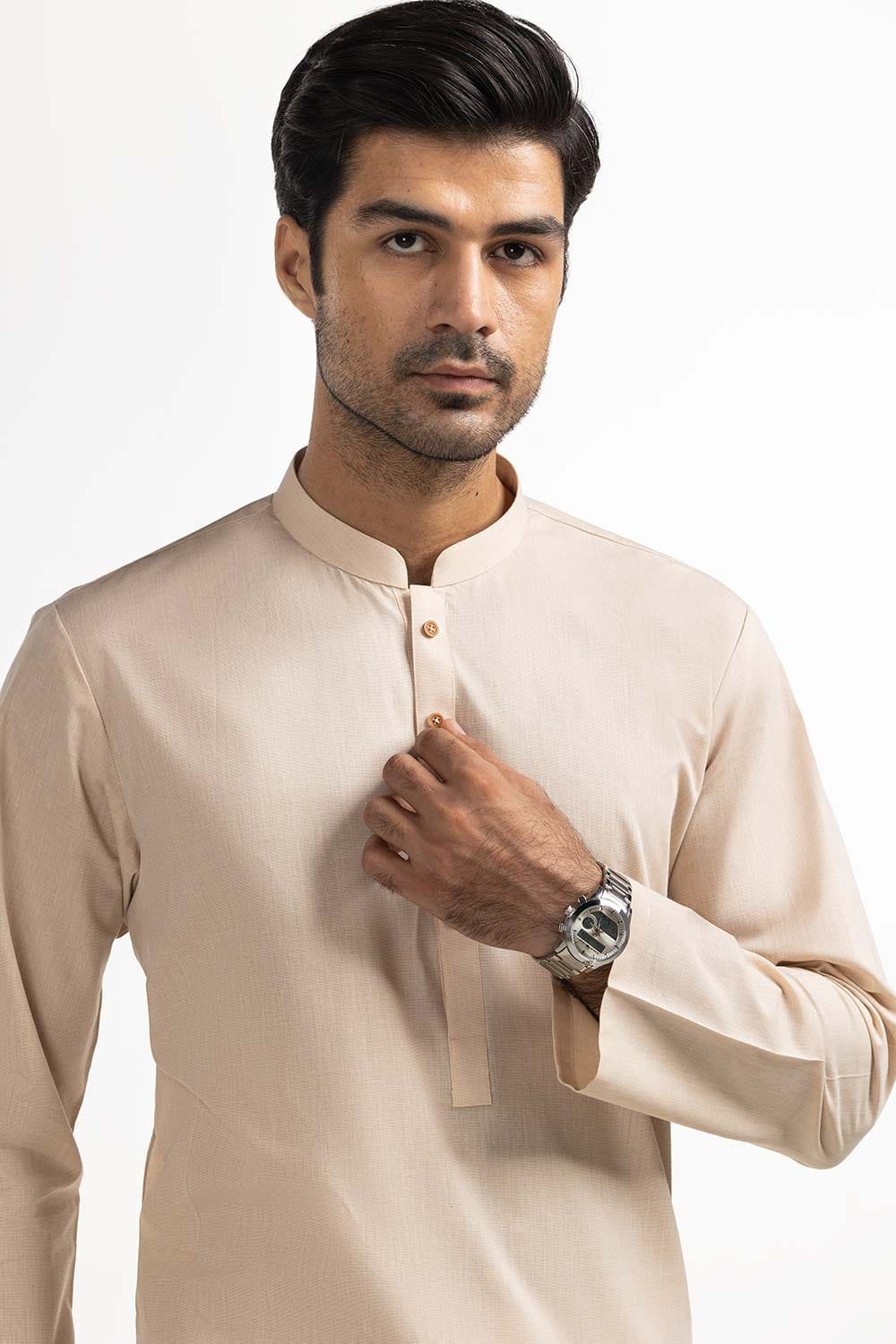 - Gul Ahmed Light Brown Basic Kurta KR-PLN24-021