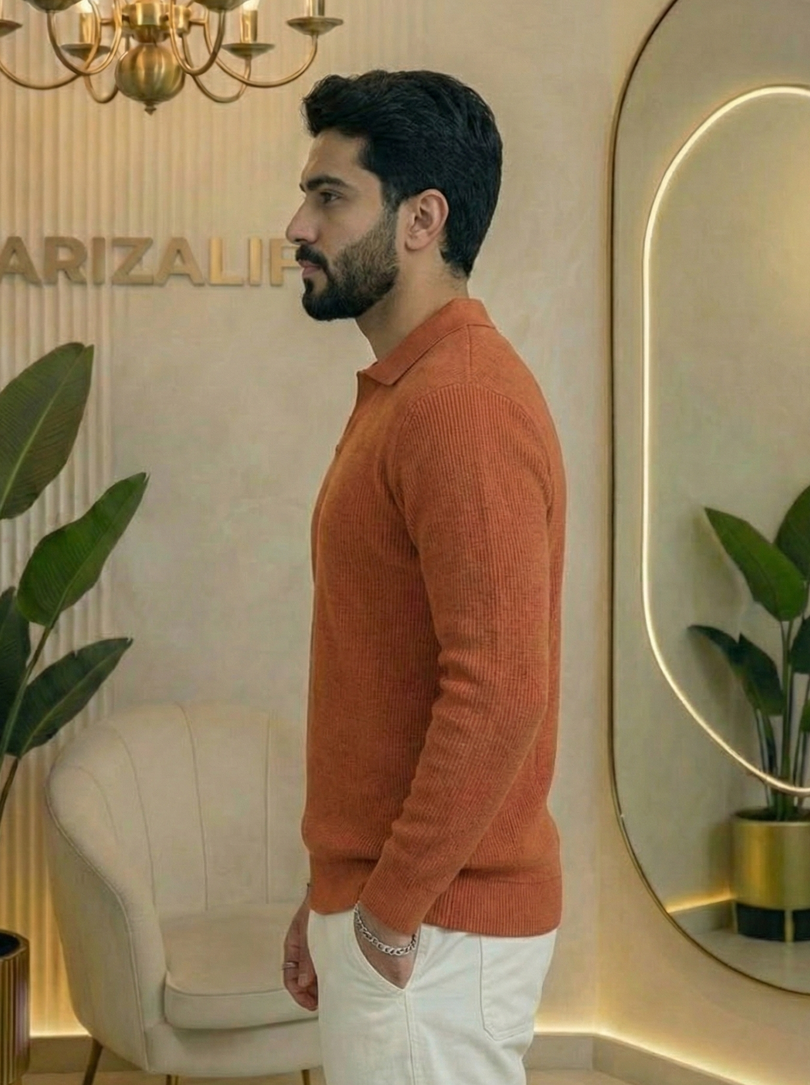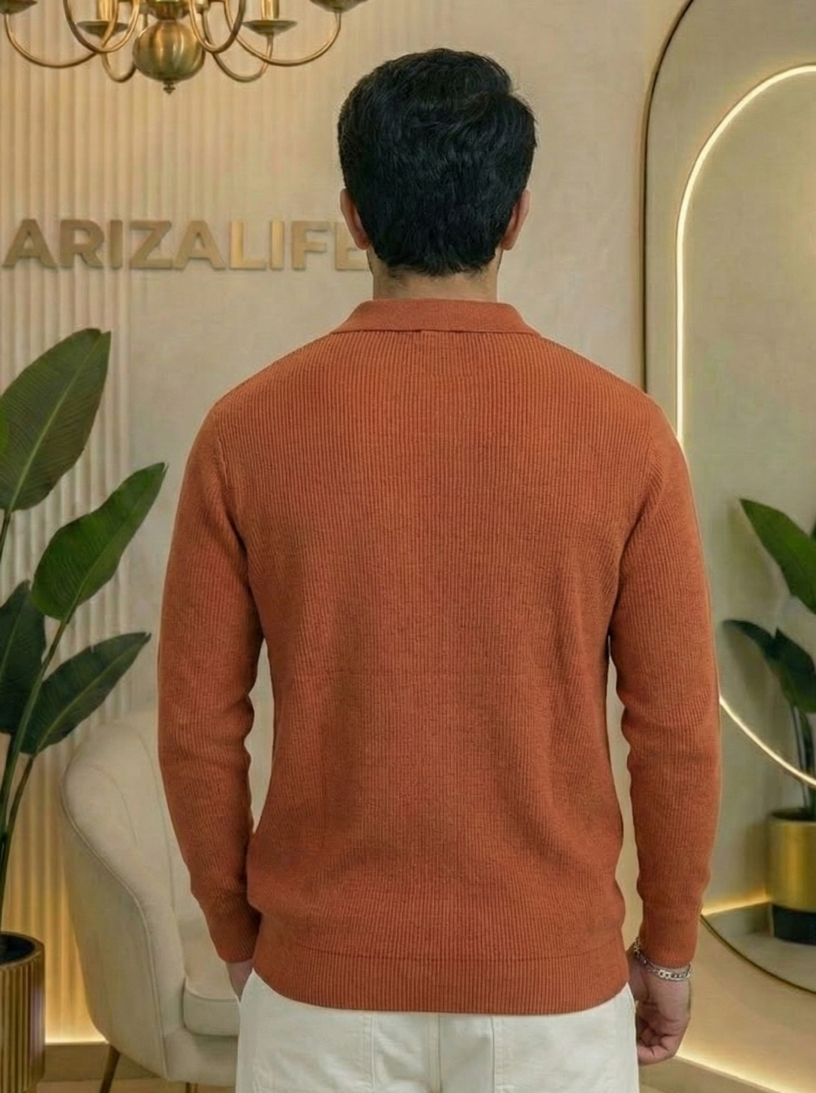 This Mens Full Sleeve Sweater Polo in Rust color is designed for those who like simple, clean, and classy winter outfits.