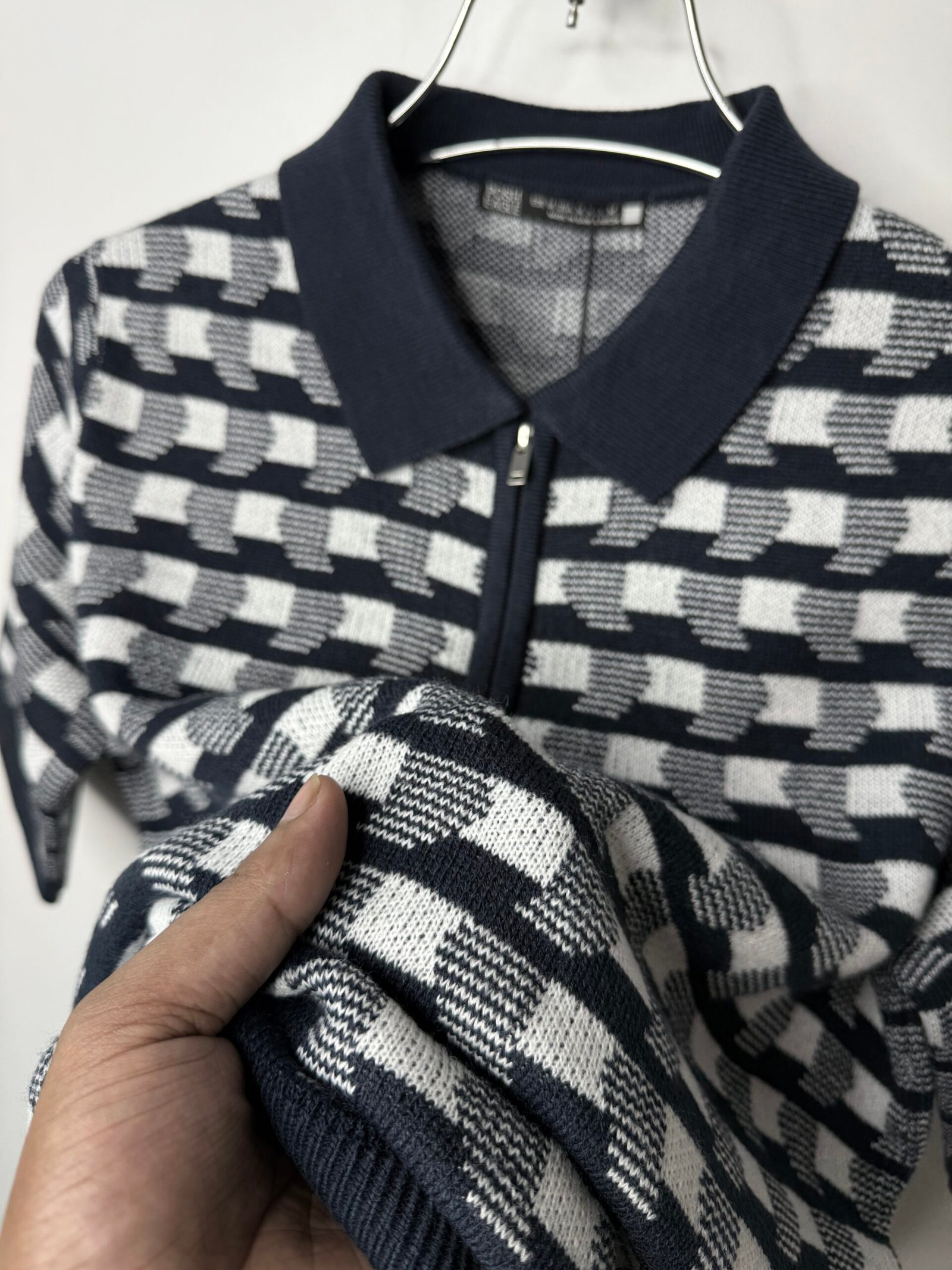 The luxury knit texture feels smooth on the skin, while the Navy Checkered design keeps your outfit classy without trying too hard. Whether you’re going out with friends, travelling, or dressing up for a smart winter look, this premium knit polo will always make you stand out.