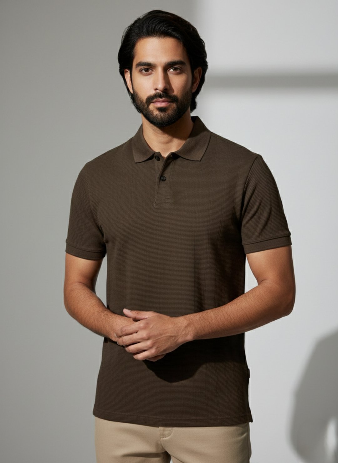 ZARA SPANDEX COTTON POLO COFFEE FOR MEN