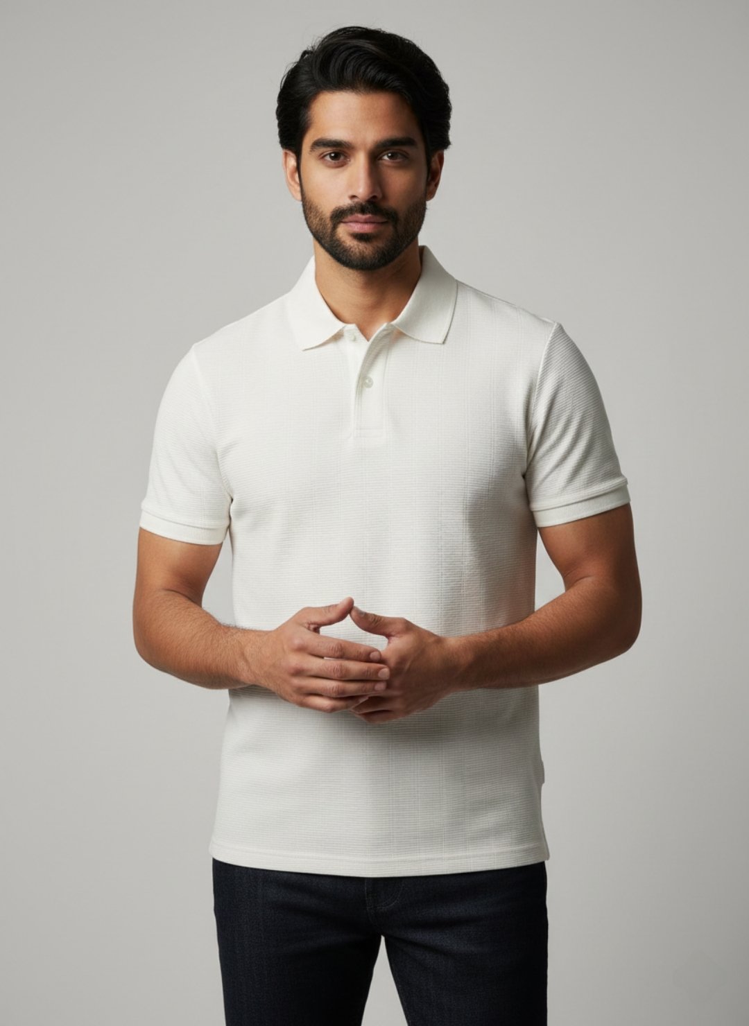 ZARA SPANDEX COTTON POLO WHITE FOR MEN